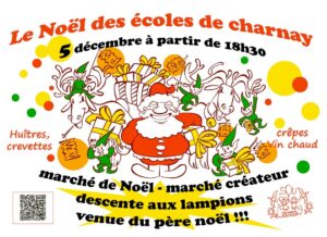 Organisé par le Sou des Ecoles Rendez-vous vendredi 5 décembre à partir de 18h30 avec de nombreuses animations comme chaque année : Pour les commandes cliquez-ici Contact : soudesecolesdecharnay69@gmail.com